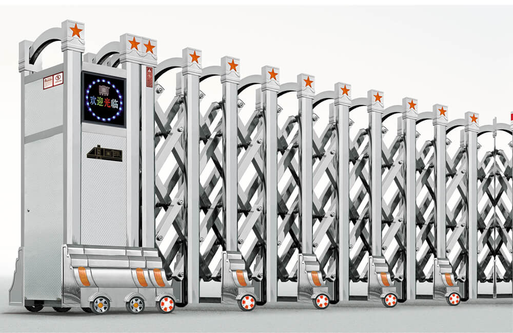 動(dòng)伸縮門(mén)主要有伸縮門(mén)體、機(jī)頭、控制器三部分組成。